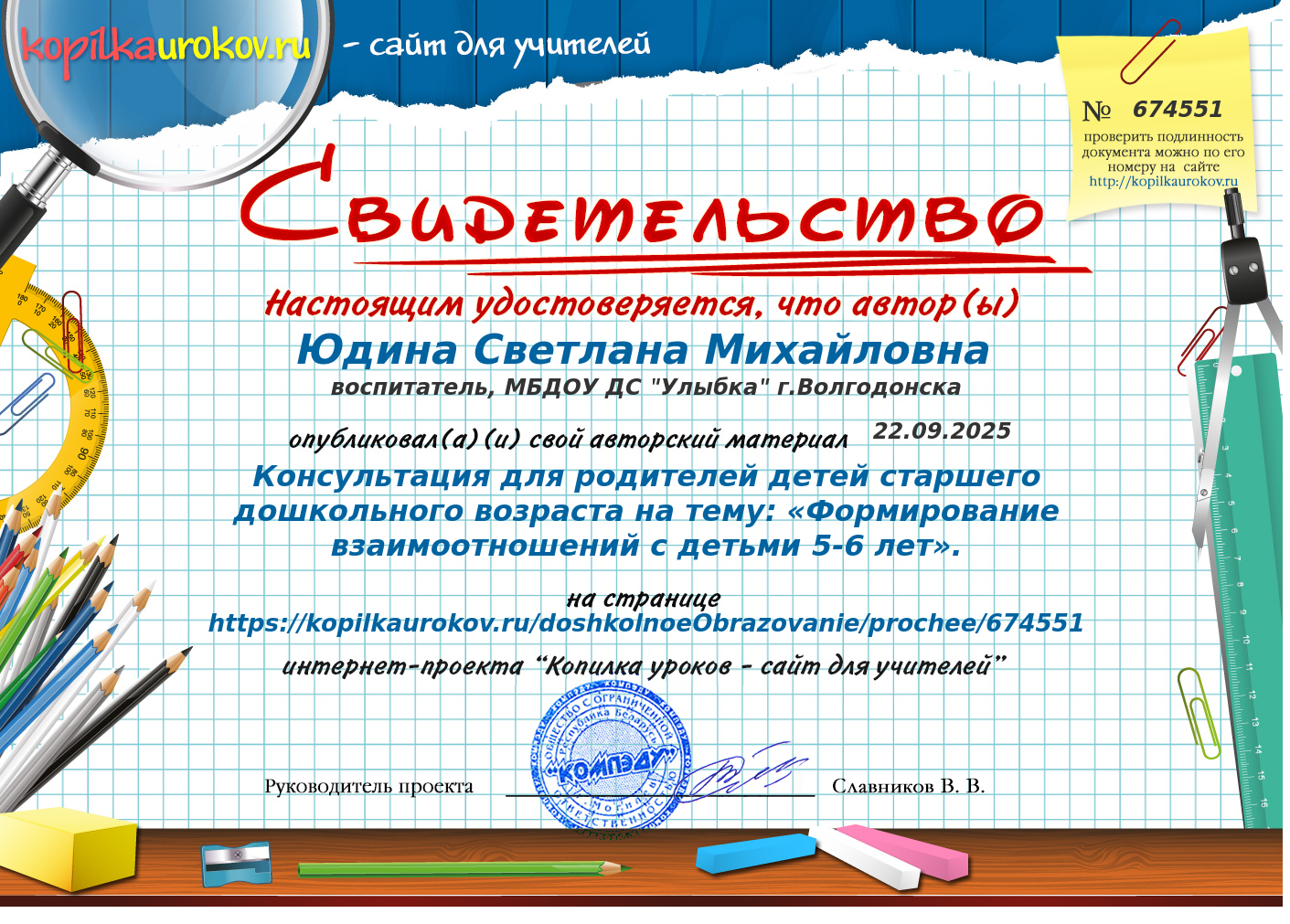 Консультация для родителей детей старшего дошкольного возраста «Формирование взаимоотношений с детьми 5-6 лет» // 2025.